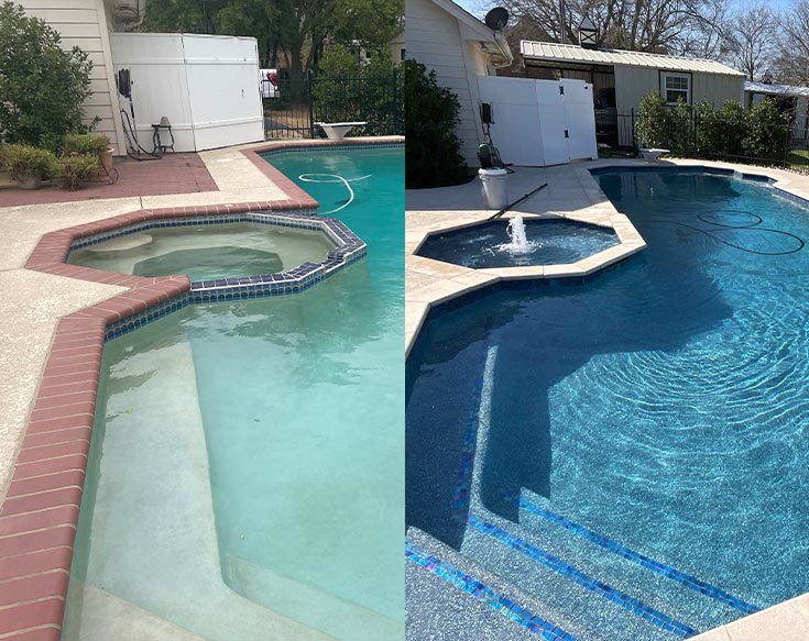 Comprehensive pool cleaning to Argyle, TX, Lantana, TX, Denton, TX, and beyond, including weekly maintenance, one-time cleanings, and our specialized Green-to-Clean pool service. Whether you need a routine pool cleaning or a fresh start for a neglected pool, our expert team ensures your pool is sparkling clean and ready for enjoyment.